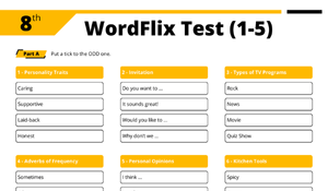 Akılda kalıcı şekilde kelime öğrenmeyi alıştıran ve kelime bilgisini test ederken öğrenciyi de öğretmeni de sıkmayan WordFlix serisi sizlerle.