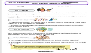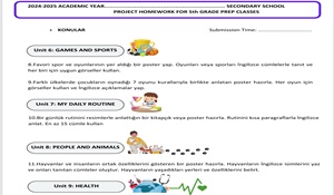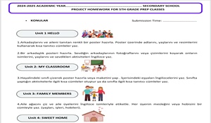 Çoklu / Yabancı Dil Ağırlıklı 5. Sınıflar İngilizce dersinde kullanabileceğiniz, ilk 14 üniteden kazanımlarına uygun hazırlanan proje ödevi konuları ve yapılan ödevleri kontrol edip dosyanızda tutmanız gereken kontrol ölçeğini dosyamızda bulabilirsiniz.