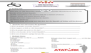 10th November Atatürk Memorial Day etkinlik dosyası, 10 Kasım Atatürk’ü Anma Günü’nün anlam ve önemini öğrencilere aktaracak okuma, kelime çalışması ve alıştırmalardan oluşmaktadır.