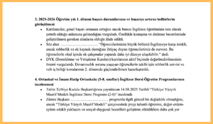 Proje Birliği: Sosyal sorumluluk kapsamında ilçedeki okullarda uygulanacak ortak bir "İngilizce Okuma Kültürü Projesi" önerisi eklenmiştir.