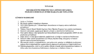2025-2026 2. Dönem Başı Ortaokul İngilizce Dersi Zümre Toplantı Tutanağı