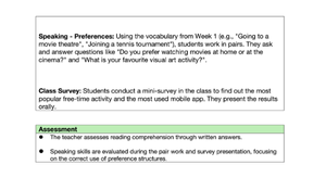 Çeşitli Yöntemler ve Materyaller (Methods & Techniques & Materials): Dinleme, okuma, kelime bilgisi, cümle tamamlama ve yeniden düzenleme gibi farklı öğrenme tekniklerini içeren, ders kitabı, ses kaydı, beyaz tahta gibi materyallerle desteklenmiş bir yapı. 📚