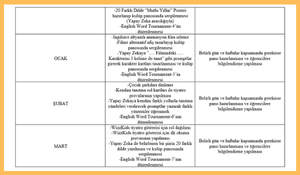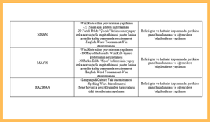 Her ay için özgün çalışmalar, pano etkinlikleri ve belirli gün–hafta kutlamalarıyla zenginleştirilen plan, öğrencilerin hem dil becerilerini hem de kültürel farkındalıklarını geliştirmeyi hedefler.
