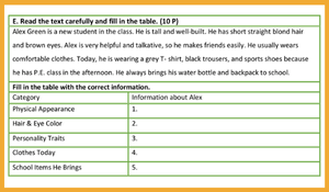 2025-2026 5. sınıf Çoklu Yabancı Dil 1. dönem 2. Yazılı. Sınav; (reading) (writing) becerilerini ölçmeyi hedefleyen toplam 10 bölümden oluşmaktadır.