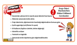 Her bir proje konusu, öğrencinin temel dil bilgisi, kelime bilgisi, sunum becerisi ve üretkenlik yönlerini geliştirmeyi destekleyecek şekilde yapılandırılmıştır. Ödevler; afiş, broşür, mini kitapçık, tasarım çalışması, poster veya dijital ürün formunda hazırlanabilir. Projelerin içerik yönergeleri, her temaya özel olarak belirlenmiş olup öğrencilerin konuyu derinlemesine incelemesini, günlük yaşamla ilişkilendirmesini ve İngilizceyi işlevsel bir biçimde kullanmasını hedeflemektedir.