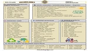 5. Sınıf Çoklu Yabancı Dil Modeli THEME 7 LIFE IN NATURE VOCABULARY LIST