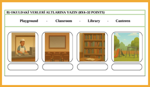 Basit düzeyde tutulmuş ve 1. ünitede bulunan kelimelerden oluşturulmuştur.