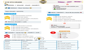 5. Sınıf İngilizce Theme 7 Life in Nature | Should – Must – Needn’t Çalışma Kağıdı (PDF)