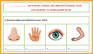 5. Sınıf İngilizce BEP (Bireyselleştirilmiş Eğitim Programı) Öğrencileri için 1. Dönem 2. İngilizce Yazılı Sınavı dosyamız.