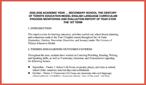Yorucu bir dönemi geride bırakırken, idareye teslim etmeniz gereken "Ders Süreci İzleme ve Değerlendirme Raporu"nu sıfırdan yazmakla vakit kaybetmeyin. ortaokulingilizce.net olarak, yeni müfredatımız Türkiye Yüzyılı Maarif Modeli'ne tam uyumlu, eksiksiz ve profesyonel bir rapor taslağı hazırladık.