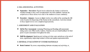 Ölçme ve Değerlendirme Yöntemleri: Performans görevleri, dinleme/konuşma sınavları ve süreç odaklı değerlendirme araçlarının (rubrics, checklists) kullanımı raporda belirtilmiştir.