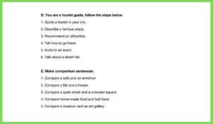 Karşılaştırma (Making Comparisons): "Compare a sofa and an armchair" veya "Compare home-made food and fast food" gibi yönergelerle, öğrencilerin iki kavramı kıyaslayarak (Comparative sentences) konuşmaları sağlanır.