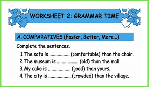 Gramer (Comparatives): "The sofa is more comfortable than the chair" gibi cümlelerle sıfatlarda kıyaslama yapısı ve There is / There are konusu özetleniyor.