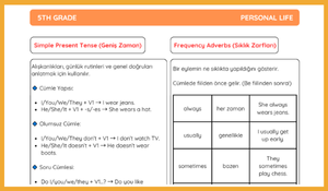 Bu dosya, 5. sınıf İngilizce dersi 3. ünite “Personal Life” konusuna ait tüm temel içerikleri bir araya getiren kapsamlı bir özet materyaldir.
