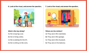 Diyalog ve Anlam Bilgisi: Günlük yaşam senaryoları (yer sorma, evini tarif etme vb.) üzerinden kurgulanmış boşluk doldurma ve kısa okuma anlama becerisini destekleyen sorular.