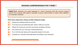5. Sınıflarda doğayı keşfettiğimiz Tema 7: Life in Nature ünitesinde, öğrencilerimizin okuduğunu anlama becerilerini (Reading Comprehension) en verimli şekilde geliştirecek yepyeni çalışma kağıdımız hazır!