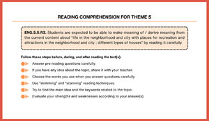 5. Sınıf Maarif Model İngilizce Reading Comprehension 2 for Theme 5: Life in the Neighbourhood and The City