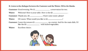 Restoranda Sipariş (At the Restaurant): İkinci bölümde, bir müşteri ile garson arasındaki gerçekçi bir diyaloğu dinlerler.