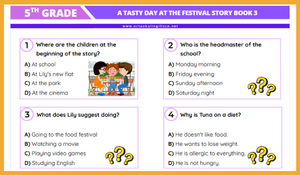5. Sınıf İngilizce derslerimizde, Maarif Modeli Hikaye kitaplarından 3. Kitap kapsamında yer alan "A Tasty Day at the Festival" hikayesi için hazırladığımız kapsamlı değerlendirme seti yayında!
