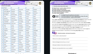 Theme 1–4 kapsamındaki ünitelere ait kelime çalışmaları ve çoktan seçmeli kelime testleri