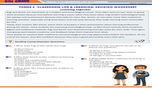 6. sınıf İngilizce Theme 2 – Classroom Life & Learning ünitesine yönelik kapsamlı bir Revision Worksheet hazırladık!