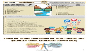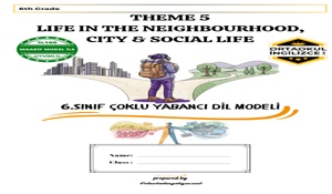 Bu PDF, 6. sınıf İngilizce Theme 5 – Life in the Neighbourhood, City & Social Life ünitesine yönelik olarak hazırlanmış eksiksiz ve kategorilere ayrılmış kelime listesi ile Social Language (günlük konuşma kalıpları) içermektedir.