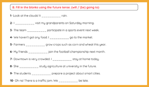 6. Sınıf İngilizce Theme 5 – Life in the Neighbourhood & Social Life konusu için hazırlanmış bu resimli çalışma kağıdı, öğrencilerin kelime bilgisi ve future tense (will / be going to) yapısını pekiştirmeyi amaçlamaktadır.