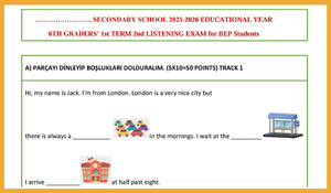 6. Sınıf İngilizce 1. Dönem 2. BEP Dinleme Sınavı