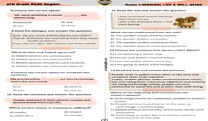 6th Grade Multi English – Theme 3 PERSONAL LIFE & WELL-BEING Test