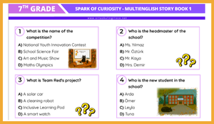 7. Sınıf İngilizce derslerimizde, Çoklu Yabancı Dil Hikaye kitaplarından 1. Kitap kapsamında yer alan "Spark of Curiosity" hikayesi için hazırladığımız kapsamlı değerlendirme seti yayında!