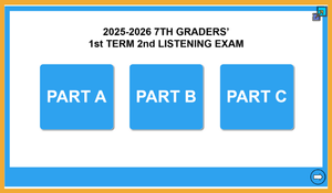 2025-2026 eğitim öğretim yılı 7. Sınıf İngilizce 1. dönem 2. listening exam toplam 3 bölümden oluşmaktadır.