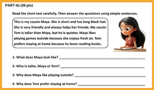 Bu sınav, 7. sınıf İngilizce dersi kazanımlarına göre hazırlanmış toplam 5 bölümden oluşmaktadır.
