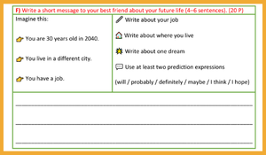 E7.7.W1. Students will be able to write pieces about predictions and future events. (2 soru)