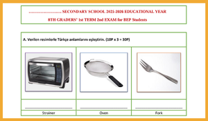8. Sınıf İngilizce 1. Dönem 2. BEP Yazılısı
