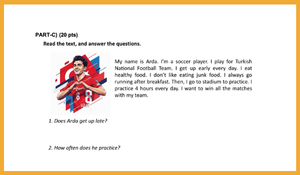 2025-2026 7. Sınıf Seçmeli İngilizce 1. Dönem 1. Reading-Writing sınavı kolay seviye olarak hazırlanmıştır.