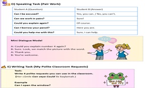 Öğrencilerin Can / Could yapılarını kullanarak sınıf içinde kibar isteklerde bulunma (polite requests) becerisini geliştirmeyi amaçlar.