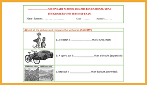 5. Sınıf Maarif Model İngilizce 2. Dönem 1. Yazılı (4 ve 5. Temalar)