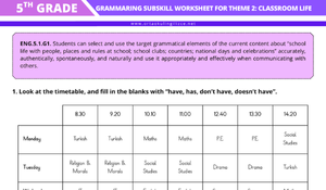 5. Sınıf Maarif Model İngilizce Grammaring for Theme 2: Classroom Life