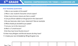 5. Sınıf Maarif Model İngilizce Reading Comprehension 2 for Theme 2: Classroom Life