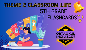 Bu renkli ve görsel destekli kartlar, 5. sınıf öğrencilerinin Classroom Life temasıyla ilgili temel kelimeleri eğlenceli ve kalıcı bir şekilde öğrenmelerine yardımcı olur. 🧠✨
