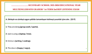 6. Sınıf Çoklu Yabancı Dil 1. Dönem 2. BEP Dinleme Sınavı