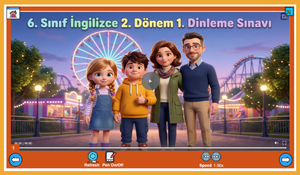 2025–2026 eğitim öğretim yılı için özel olarak hazırlanan 6. sınıf İngilizce 2. dönem 1. dinleme sınavı, Türkiye’de bir ilk olma özelliği taşıyan video destekli listening exam formatı ile öğretmenlerin ve öğrencilerin kullanımına sunulmuştur.