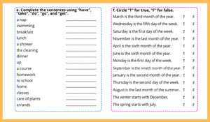 Bu kitap, günlük rutinler, zaman ifadeleri, sayılabilir–sayılamaz isimler, yiyecek–içecek kelime grupları ve okuduğunu anlama becerileri gibi yılın ilk ünitelerinde öğrenilen konuları eğlenceli alıştırmalarla yeniden ele alır. Etkinlikler; boşluk doldurma, eşleştirme, cümle tamamlama, doğru–yanlış, paragraf anlama ve test soruları gibi farklı türlerde hazırlanarak öğrencilerin dikkatini canlı tutar ve her beceriyi destekler.