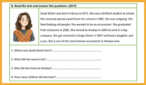 7. Sınıf İngilizce 1. Dönem 2. Yazılı (Reading-Writing) (MEB Senaryo 1)