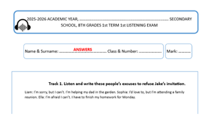 2025-2026 8. Sınıf İngilizce 1. dönem 1. dinleme sınavlarımızın ikinci örneği sizlerle.