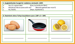 8. Sınıf İngilizce 1. Dönem 2. BEP Yazılısı
