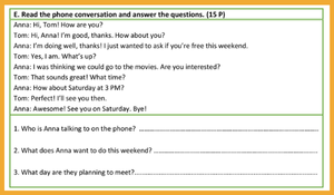 Kazanım: E8.4.R1 – Telefonla iletişim temalı kısa ve basit metinleri ilgili kelimelerle birlikte anlayabilir.