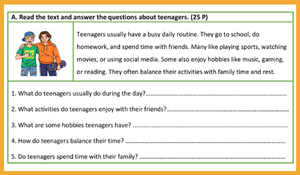 Kazanım: E8.2.R1 – Öğrenciler, gençlerin günlük / düzenli aktivitileriyle ilgili kısa ve basit metinleri anlayabilir.