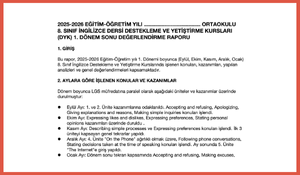 İngilizce Destekleme ve Yetiştirme Kursu (DYK) 1. Dönem Sonu Raporu