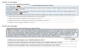 2025-2026 6. Sınıf Çoklu Yabancı Dil Modeli 1. Dönem 2. Yazılı (Reading-Writing (Senaryo 1)